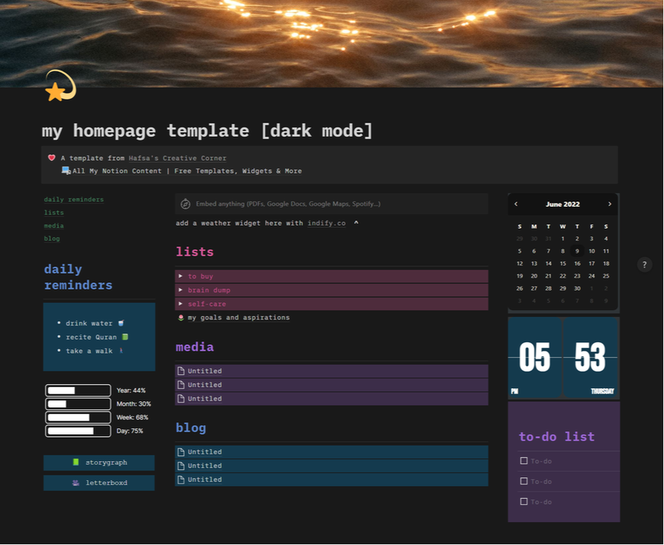 This template is ideal for anyone seeking a straightforward method to organize their pages on Notion with an aesthetic layout. With this template, you can easily link your existing pages, allowing you to access everything from a single location.