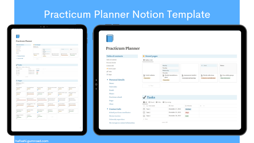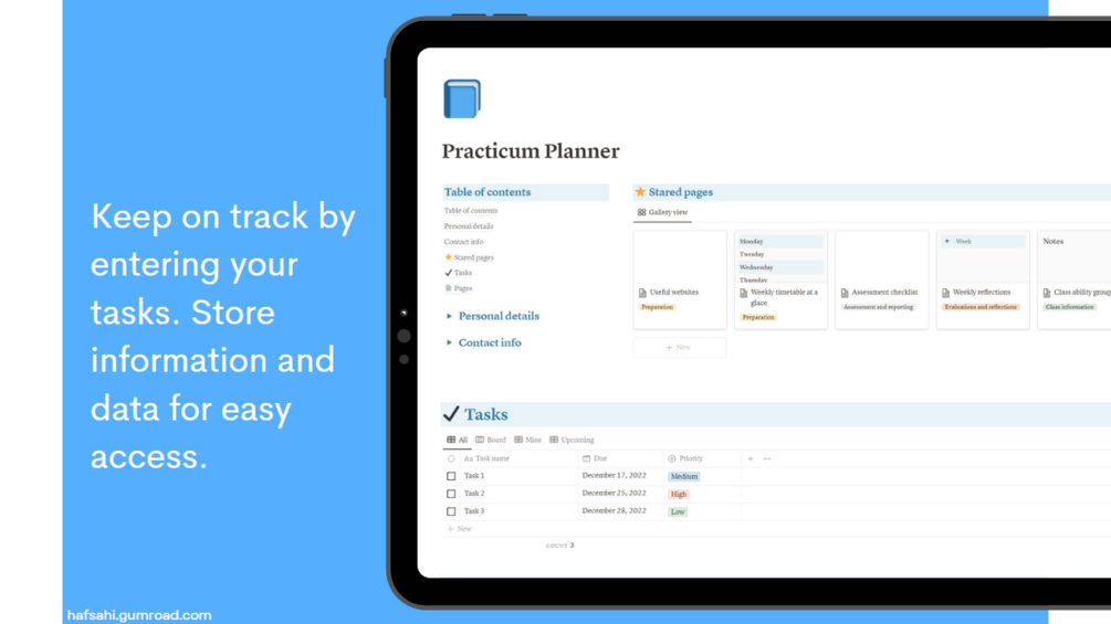 This practicum planner Notion template is a great resource for staying organised and on track throughout your practicum experience.