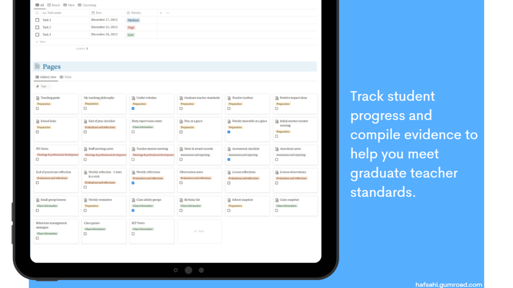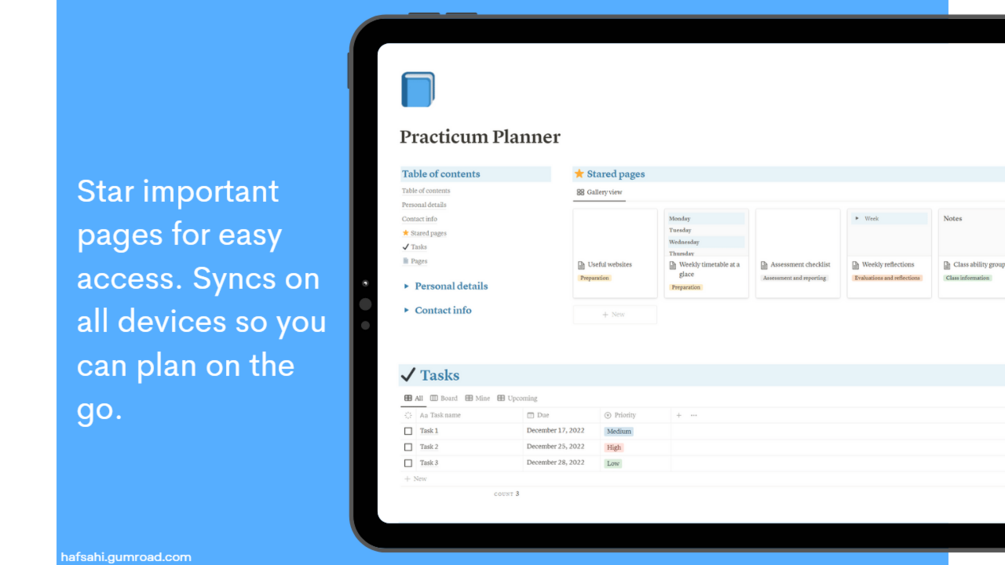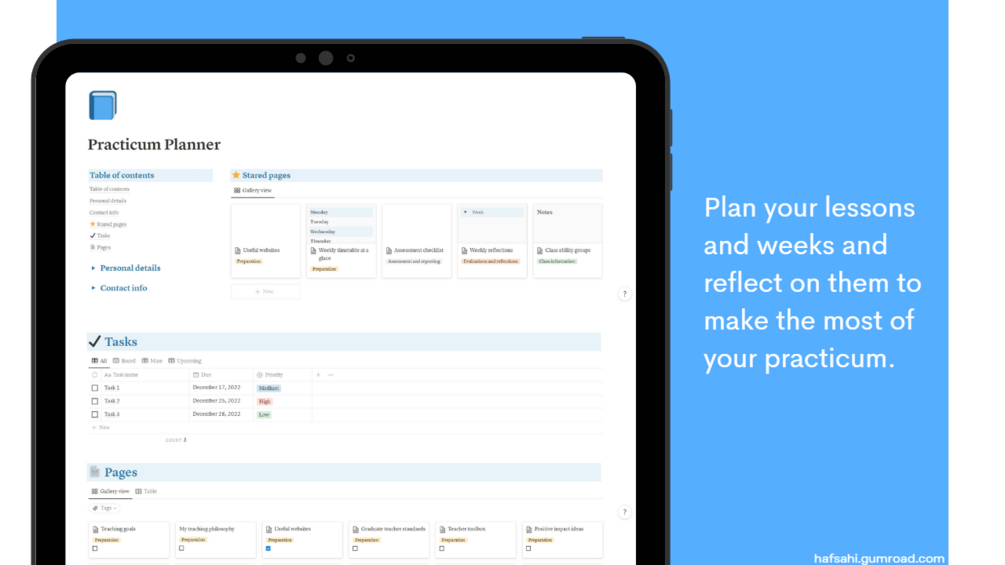 This practicum planner Notion template is a great resource for staying organised and on track throughout your practicum experience.
