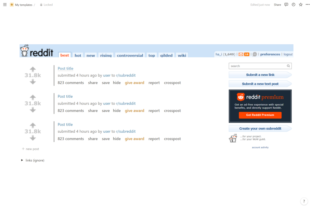 Old Reddit-Inspired Notion Template